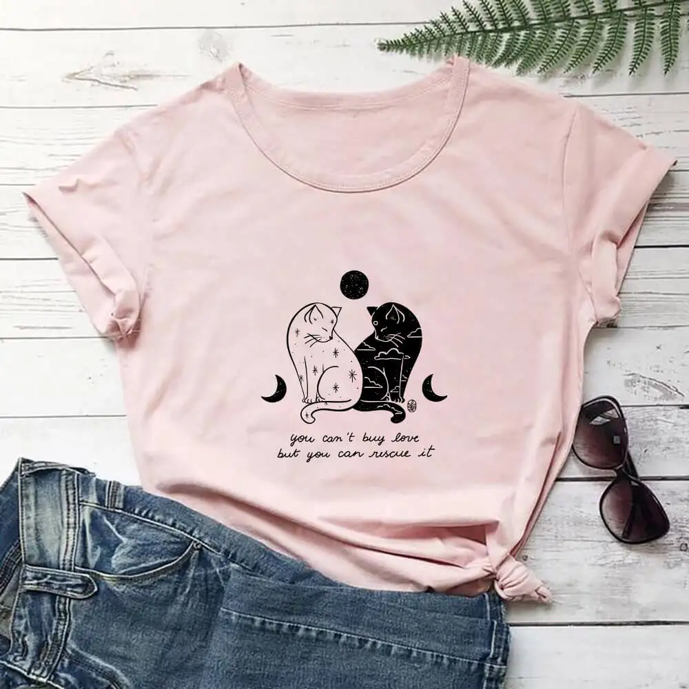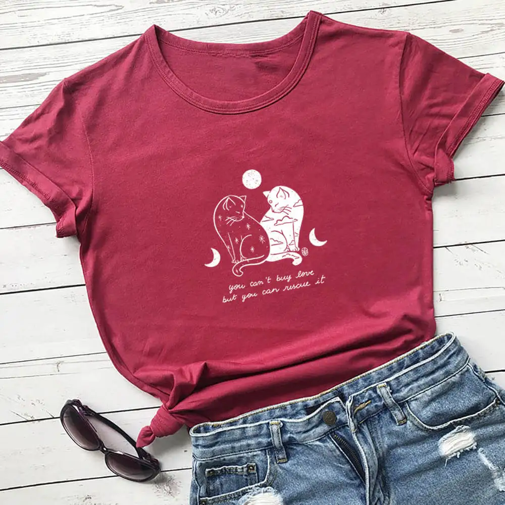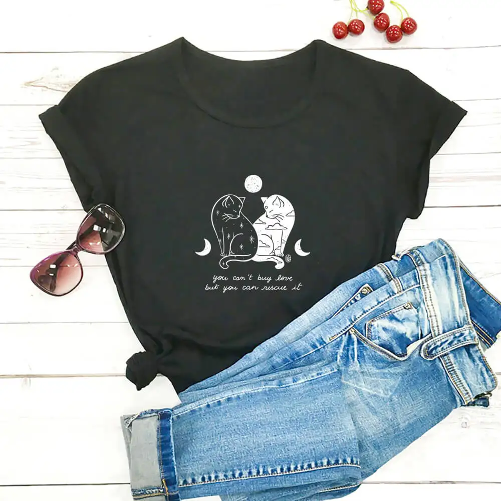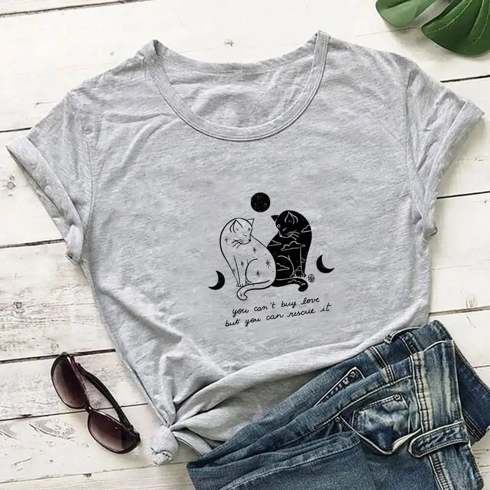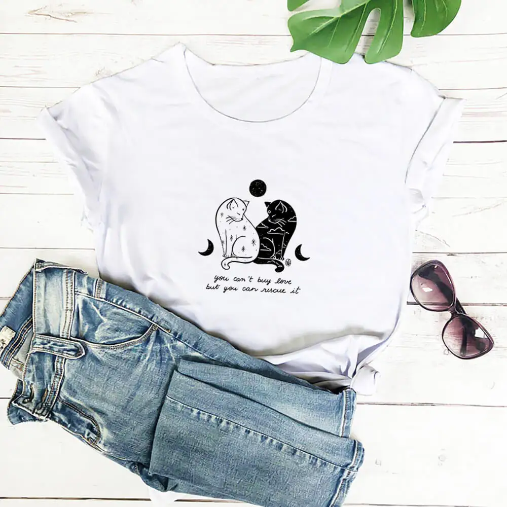Футболка женская из 100% хлопка, с принтом кошек и надписью You Can Rescue It, забавные Летние повседневные топы с круглым вырезом и коротким рукавом, подарок для любимых питомцев