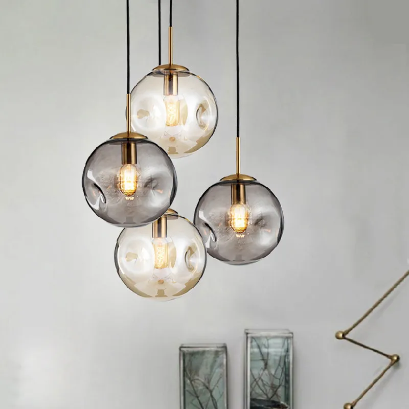 Современные Подвесные светодиодные лампы в скандинавском стиле, дизайнерские подвесные светильники со стеклянным шаром для помещения, холл ресторана с серым светильник том