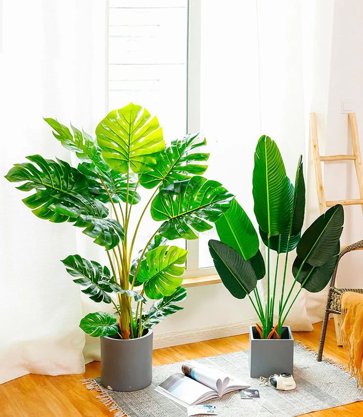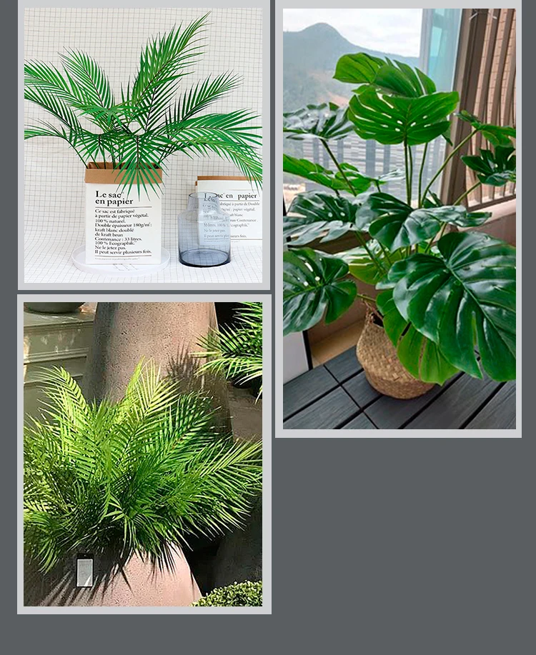 Большие тропические пальмовые растения, 50-123 см, 36 видов, искусственные ветки, летние зеленые растения, настоящие прикосновения, украшение для балкона, дома вечерние НКИ