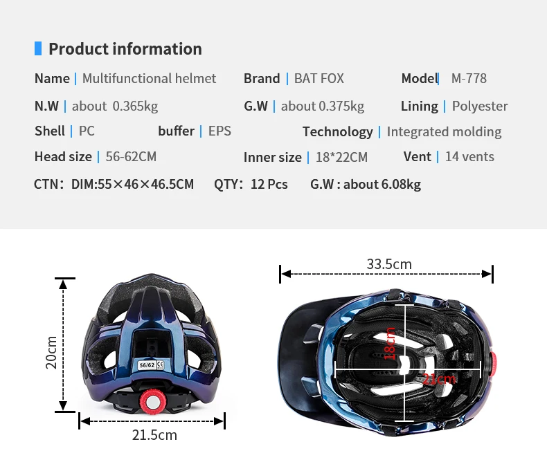 Горный шлем BATFOX, Сверхлегкий велосипедный шлем с солнечными очка...