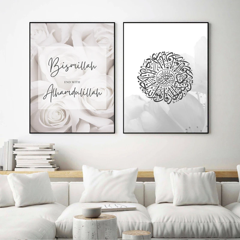 Черно-белая альхамдуллилла бисмиллач мусульманская стена искусство ...