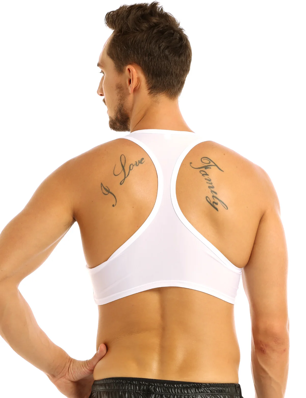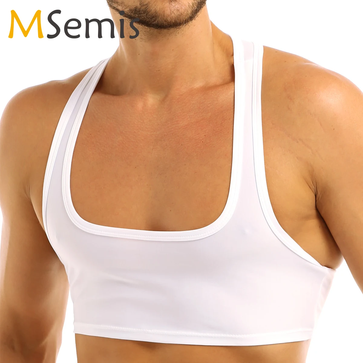 MSemis, мужские сексуальные спортивные шорты без рукавов борцовка Облегающая майка для тренировок и занятий в спортзале, спортивный короткий топ рубашка Клубная одежда сценический костюм мужской Фитнес жилет