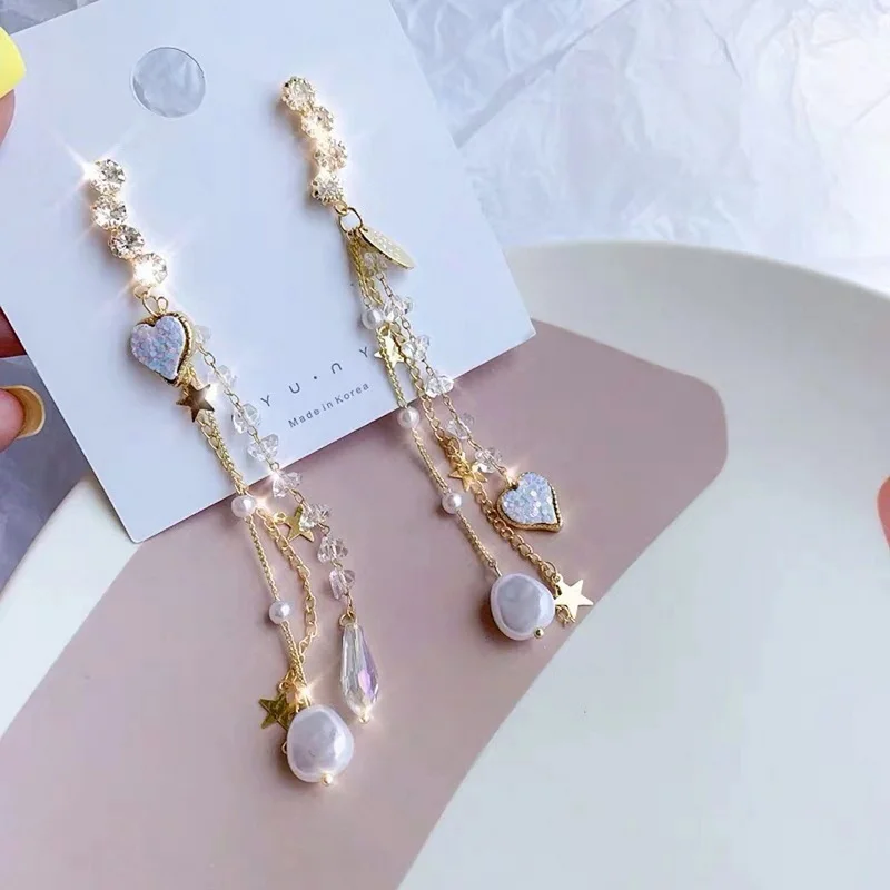 Новые корейские стильные серьги с белыми цветами темперамент кристалл, Длинная кисточка, серьги для женщин, Свадебная вечеринка, ювелирное изделие, подарок