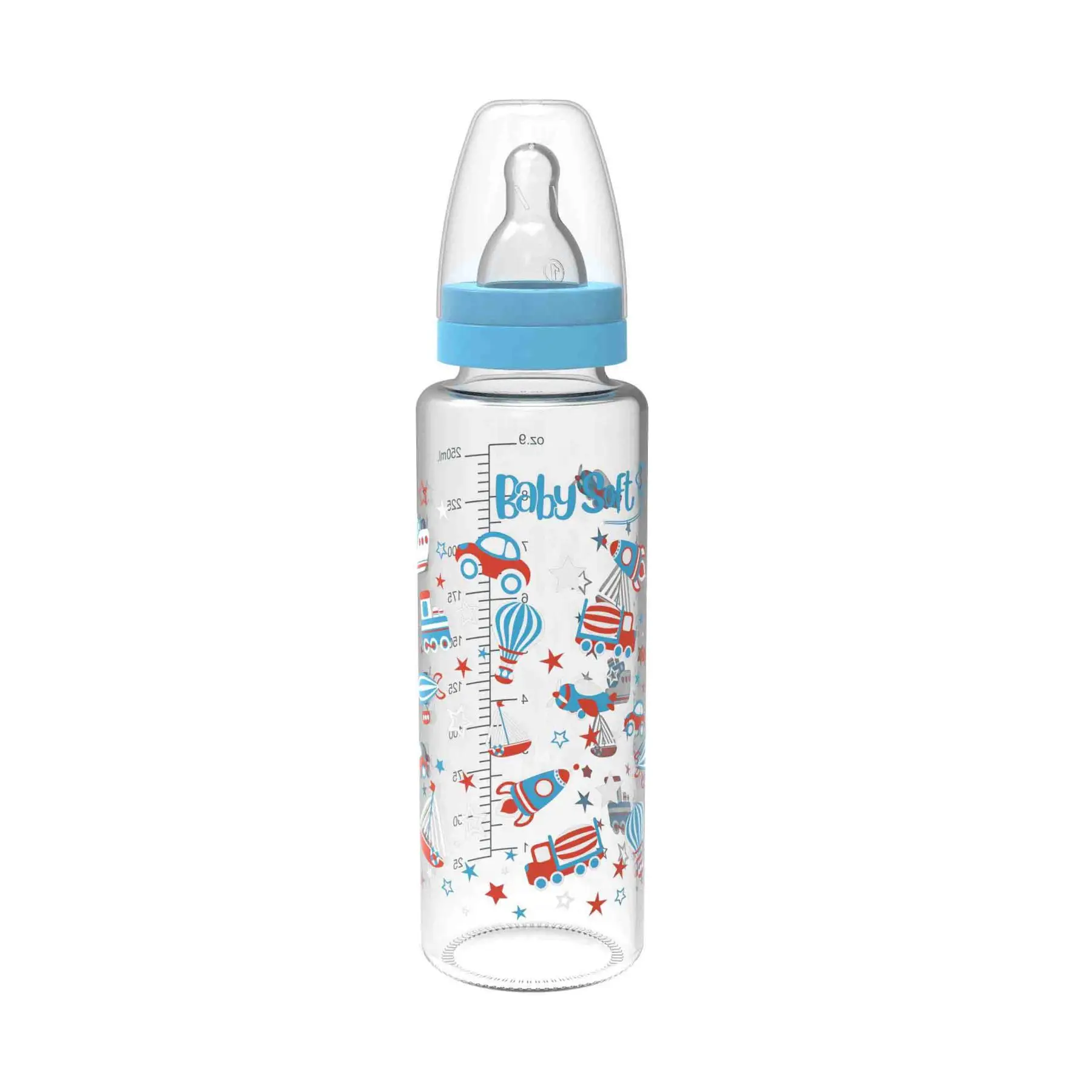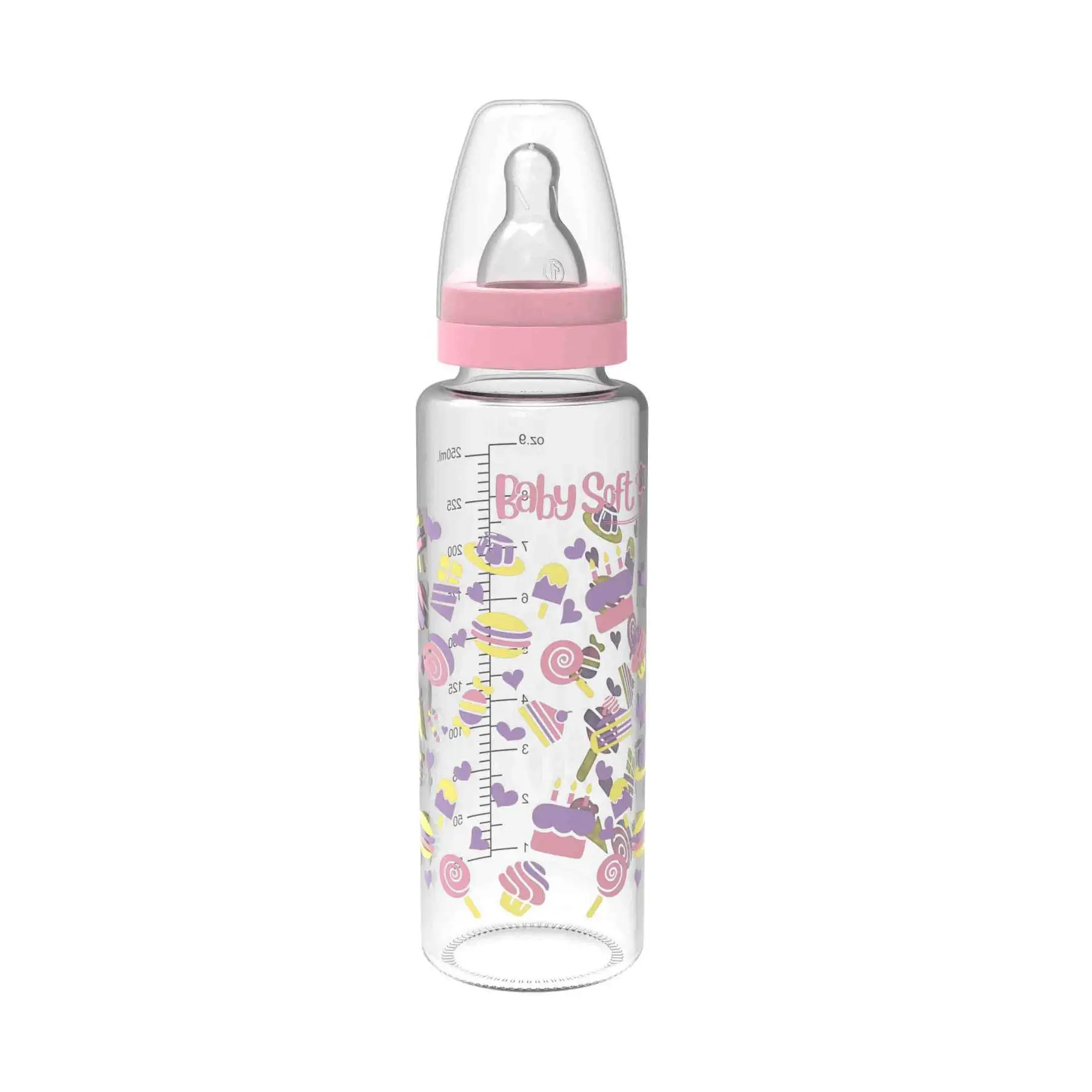Стеклянная бутылка для кормления для мамы и младенца, 250 мл, с красочным узором, качественная круглая бутылка для девочек и мальчиков, Babysoft