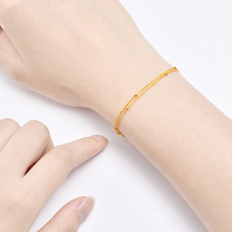 Sinya Au750 18k чистый золотой бисер lucky star семейный дизайн браслет Золотые бусы 2 мм для женщин и девочек Длина мамы 16 см + 3 см горячая распродажа