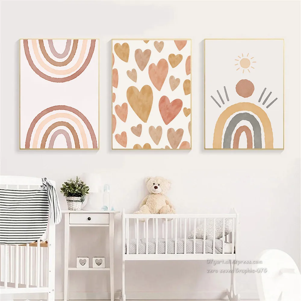 Солнце Радуга Сердце Живопись детская комната Холст плакат You Are My Sunshine цитаты печать Boho абстрактная Настенная картина Декор детской комнаты