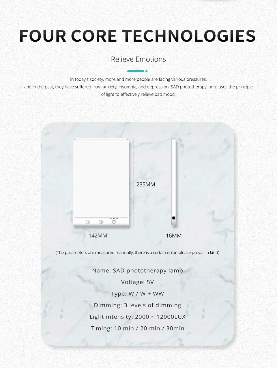 USB грустно светильник имитирует естественный светильник терапии лампа сенсорный экран iphone 5V USB Timming 3 режима затемнения сезонная депрессия лампы терапии