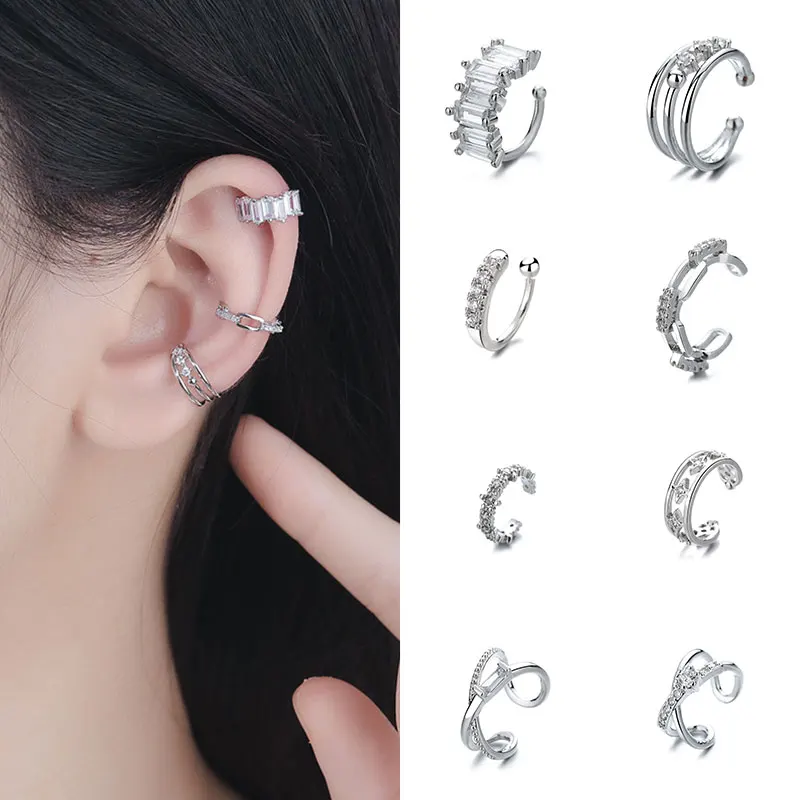 Очаровательная линия циркониевый Зажим для девочек, 1 шт., серьги-каффы для ушей без пирсинга, ювелирные изделия