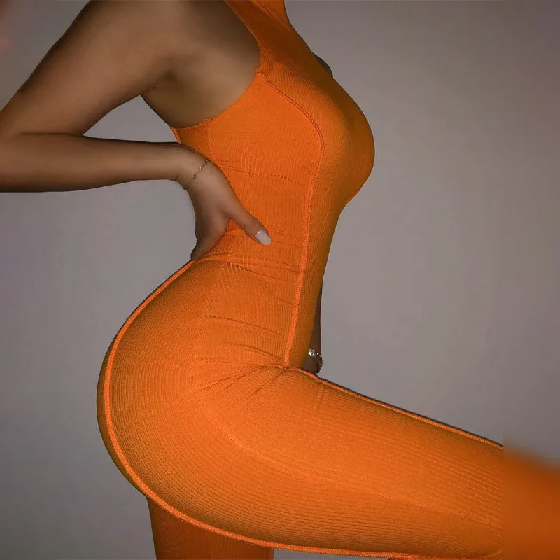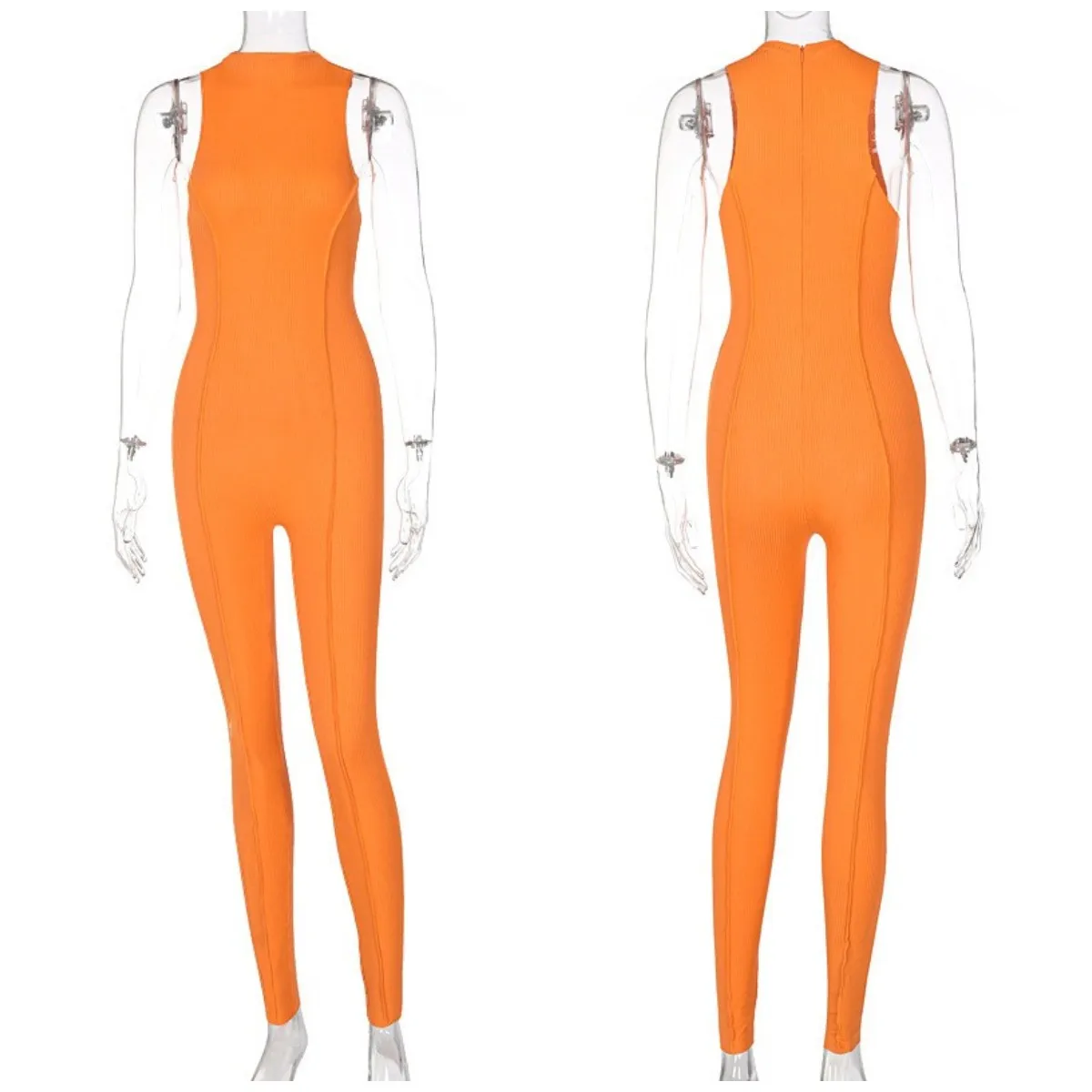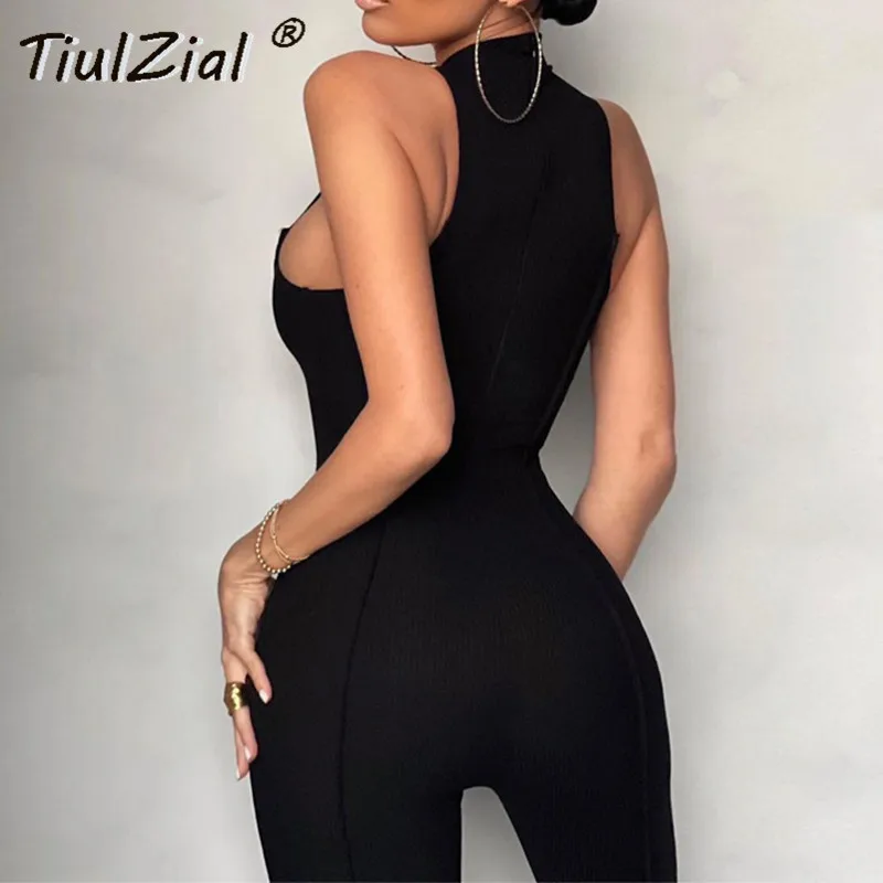 Женский трикотажный комбинезон в рубчик TiulZial, облегающий спортивный длинный комбинезон без рукавов, комбинезон с молнией на спине, комбинезоны
