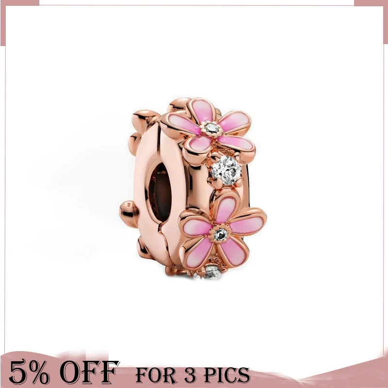 Женский браслет из серебра 2021 пробы, с розовой маргариткой