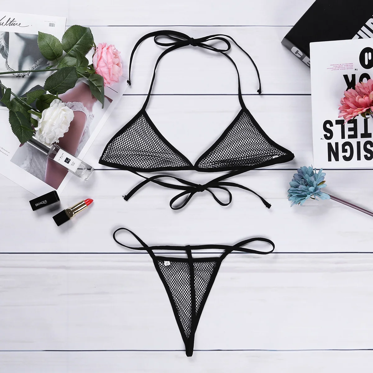 Женское сексуальное белье, сексуальное белье Набор Эротическое белье прозрачная сетка прозрачная мини бикини бюстгальтер-топ с микро-стринги