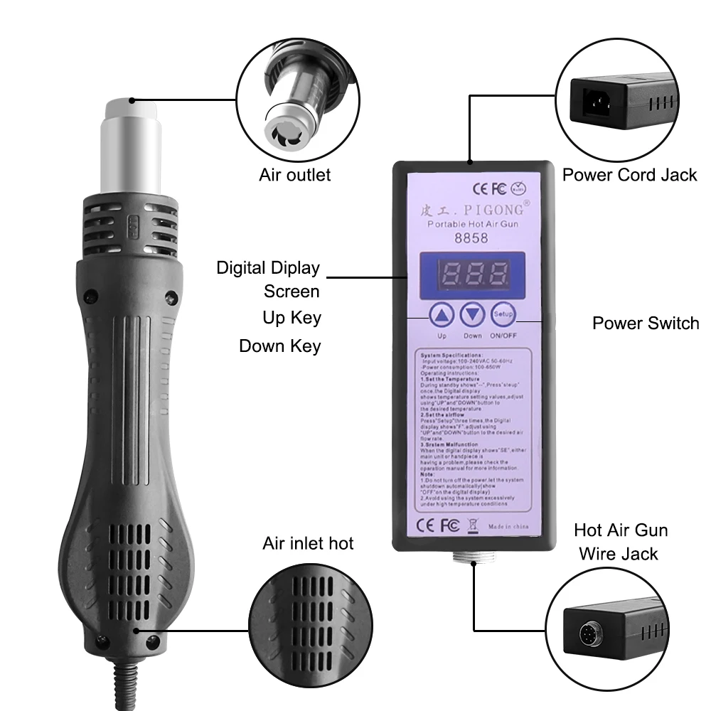 Паяльная станция 858D 858, портативный цифровой строительный термопистолет с корпусом BGA