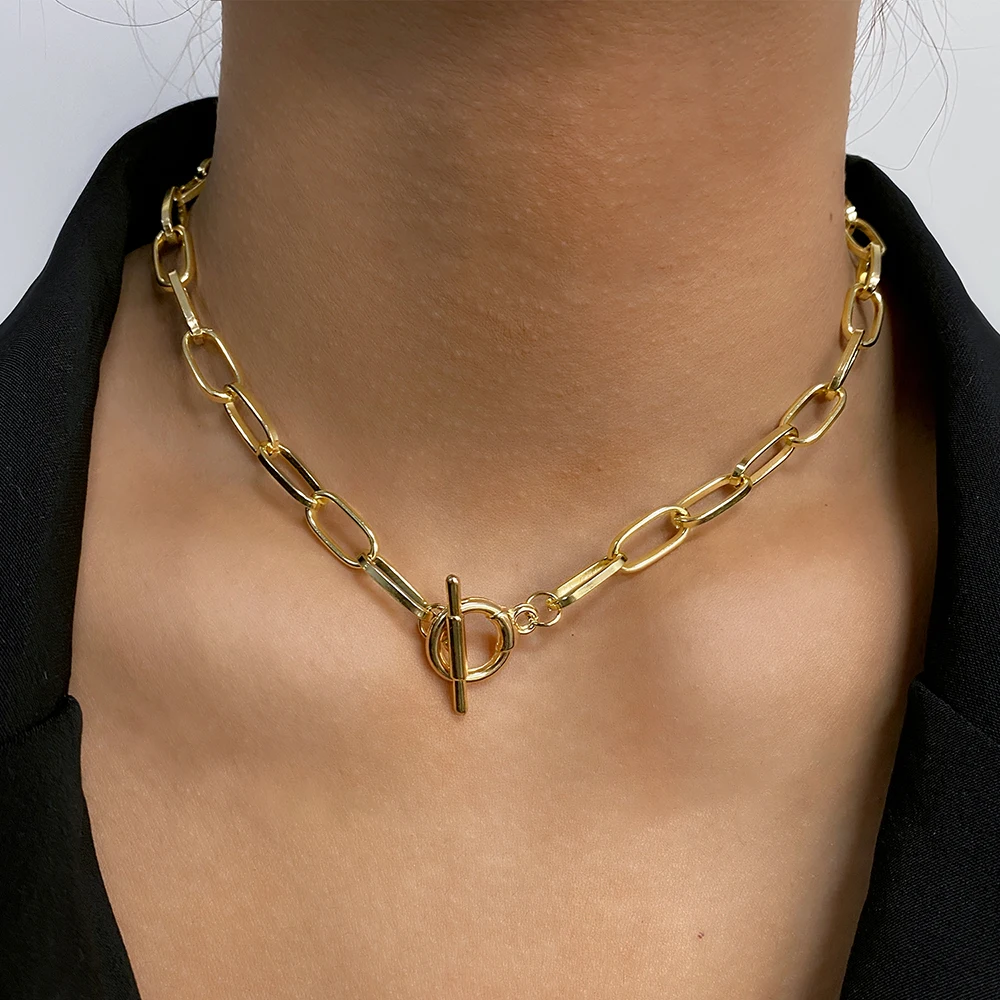 Ожерелье IPARAM в стиле панк женское, толстая цепь с застежкой OT, Минималистичная цепочка с переключателем, колье-чокер, Подарочная бижутерия