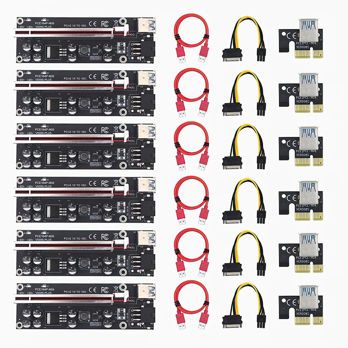 2021 новые стояки PCI-E. Это стояки высочайшего качества на рынке с строгим контролем качества для обеспечения соединения и долгосрочной надежности, в то же время мы также предоставляем лучшие цены. Все приспособления для шнуров изготовлены из более плотного и прочного пластика, что обеспечивает более тепловыделение. Доски толстые, что способствует долговечности и держанию карт без проблем. Пайка на нижней части каждой доски более обильная, предотвращая сокращение на досках и увеличивая долговечность во время добычи. Мощность через Molex или два разных 6-PIN входов на борту riser.Описание продукта анализ:1. Графическая карта использует 8 FP твердые конденсаторы для источника питания. Чип машины против ожогов. Сделайте видеокарту более стабильной.2. Добавить 3 светодиодный индикатор3. Позолоченный интерфейс USB3.0, работает быстрее и стабильнее4. Адаптерная карта питается отдельно, так что источник питания видеокарты не зависит от материнской платы, тем самым уменьшая нагрузку на материнскую плату при подключении нескольких графических карт.5. Слот для видеокарты принимает оригинальный импортный разъем, чтобы сделать видеокарту контактной лучше.6. Разъем PCI-E использует многослойный экранированный провод7. Провод относительно мягкий, легко перемещается, и видеокарта может быть размещена по желанию.8. Слот оснащен фиксированной пряжкой, которая удобна для удаления и фиксации графической карты, так что видеокарта не отпадет от слотаКаждый набор поставляется с (6) следующим:1x PCI-E подъемная плата1 * кабель питания SATA1x чип PCI-E1x USB 3,0 Шнур