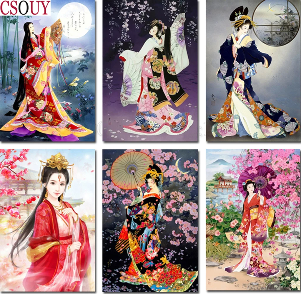 Картина из страз сделай сам с изображением японской Танцовщицы, квадратная и круглая Алмазная вышивка, подарки для домашнего декора, мозаика для рукоделия