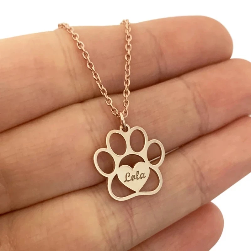 Ожерелье с именем милой кошачьей лапы и сердца, персонализированная собака, медведь, след, гравировка, ювелирные изделия из нержавеющей стали для женщин, мамы, детей, подарок