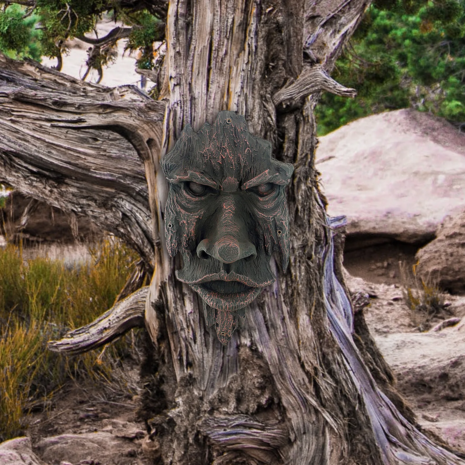 Скульптура зеленого дерева из смолы, лай, призрак, лицо, особенности лица, украшение для сада, Декор, креативный реквизит, украшение Jardineria