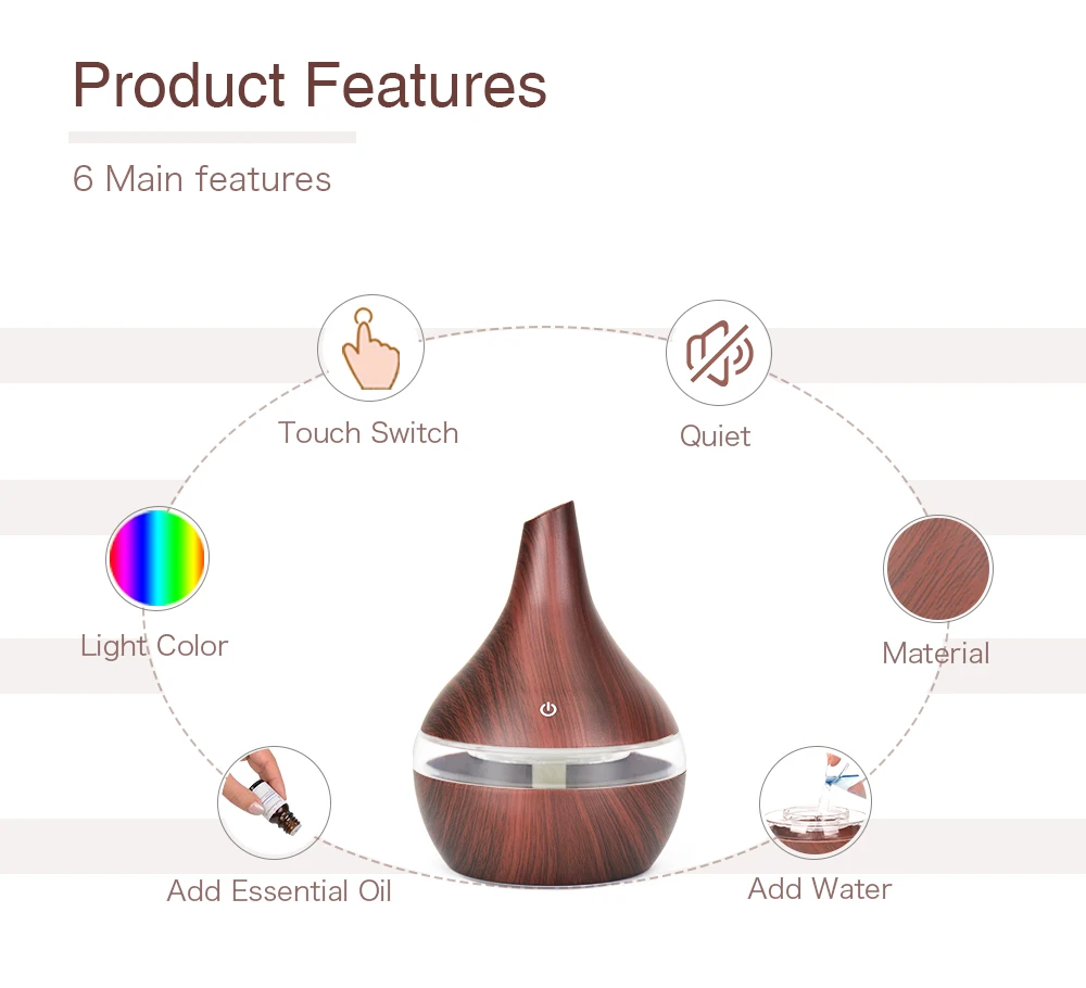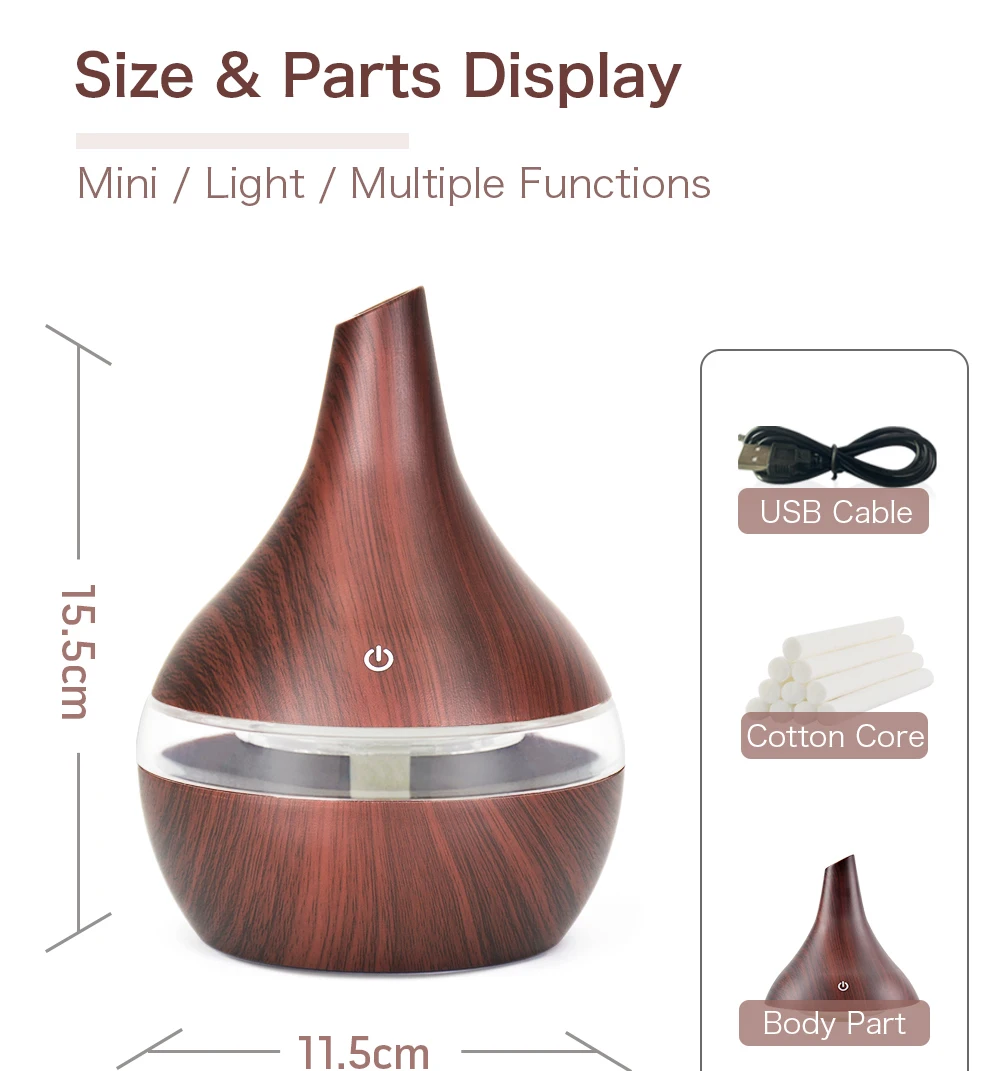 300 мл ультразвуковой эфирное масло холодный туман одна насадка USB увлажнитель бытовой красочный очиститель воздуха с древесным зерном арома-диффузор