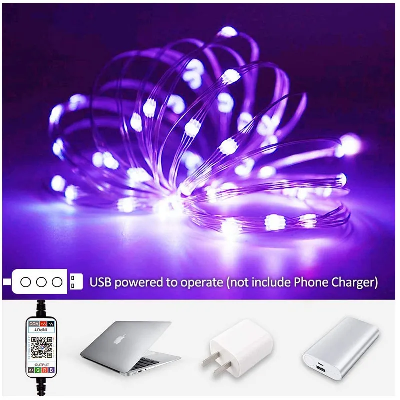 Светодиодная USB-гирлянда с Bluetooth, APP, медный провод, сказосве...