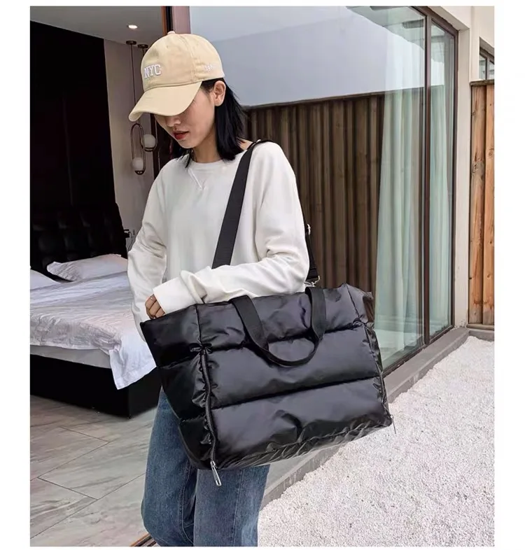 Новинка 2021, водонепроницаемые нейлоновые сумки, вместительная Хлопковая Сумка-тоут с пухом и перьями, женские сумки, вместительная сумка на плечо для женщин