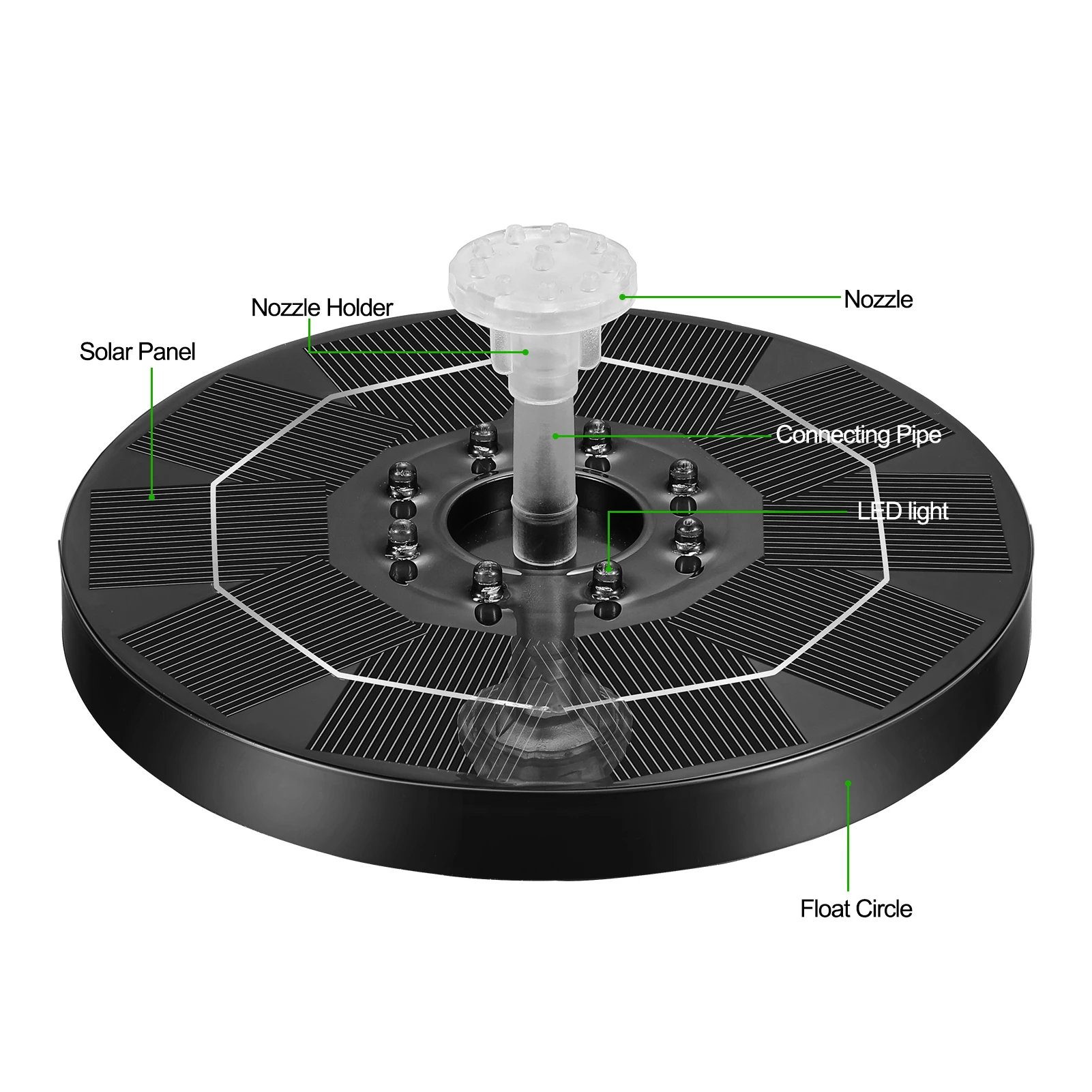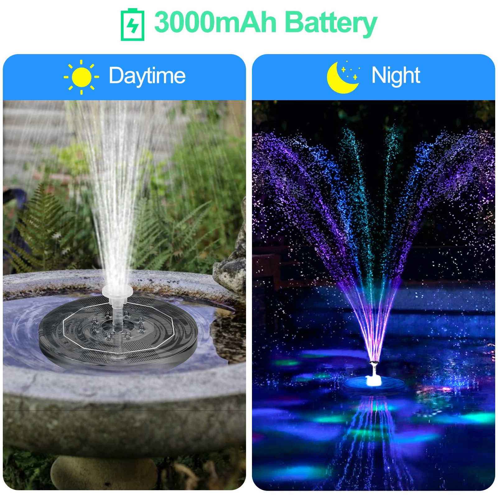 1. Хранение электроэнергии, длительное время освещения: Новая обновленная версия, солнечный фонтан 5V3W. Когда солнце заполнено, он распыляет воду более мощно, чем любой другой фонтан на рынке; Он имеет встроенный 3000 мАч высокопроизводительный полимерный литиевый аккумулятор с функцией питания. Вода может распыляться в пасмурные дни, а светодиодный спрей может работать в течение 5 часов ночью.2. Великолепная светодиодный Красочные светильник s: 8 светодиодный светильник, в тех случаях, когда светильник датчик обнаружения ночного поставляется, есть 7 видов цветов, светильник, делая ночное бассейн выглядеть еще более привлекательно. Фонтан гнезда солнечной птицы может автоматически управляться под прямыми солнечными лучами всего за 3 секунды. Он имеет встроенный высокопроизводительный полимерный литиевый аккумулятор, а высота распыления воды более 30 см в пасмурные или солнечные дни. Он может работать в течение 5 часов без электричества или аккумулятора.3. Используйте специальные наружные материалы, прочные, Антивозрастные, непромокаемые, антикоррозийные, высокая термостойкость, не нужно беспокоиться о длительной плохой погоде, срок службы-3 года.4. Новая технология обновления: фонтан для хранения солнечной энергии-это ландшафтное фонтанное устройство, которое использует солнечные панели для зарядки аккумулятора и насоса воды. Этот продукт использует высокоэффективные солнечные панели и новый тип бесщеточного водяного насоса, который имеет преимущества быстрого запуска, высокой эффективности и сильной стабильности. Кроме того, продукт плавает на воде, внешний источник питания не требуется, простая установка и простая эксплуатация.5. Встроенная функция контроля уровня воды может автоматически прекращать работу при нехватке воды. Он начнется сразу же после добавления воды без перезапуска и активации. Он прост в эксплуатации и предотвращает погружение насоса на холостом ходу и снижает срок службы насоса; Этот новый тип фонтана солнечного насоса очень подходит для птичьего гнезда, аквариума и т. д. Небольшой пруд, бассейн, Сад, Терраса, газон, циркуляция кислорода. Принесет вам больше радости.Спецификация:Название: светящийся солнечный фонтанОдин размер: около 200 × 190 × 47 мм/7.87x7.48x1.85 дюймовОдин вес: около 440 гМощность солнечной панели: 5,0 V 3,0 WРазмер панели солнечных батарей: около ø180мм/7,09 дюймаМощность водяного насоса: 4,0 V 1,0 WБатарея: перезаряжаемый литий-ионный аккумулятор 3,7 V/ 3000mAhСветодиодный разноцветными огоньками: 8 семь цветов красочные медленно мигает светодиодный светМаксимальный расход насоса: 300 л/чМаксимальный подъем воды насоса: 120 смМаксимальная высота распыления: 60 смСрок службы фонтана: ≥ 10000 часов.Срок службы батареи: 300-500 раз зарядки и разрядки.Задержка: ≤ 3 с (насос автоматически перезагружается в течение 3 секунд)Время работы: весь день; До 5 часов в ночное время.Функция батареи: когда солнце слабо или погода плохая, батарея поможет фонтану работать. Батарея будет находиться в солнечном фонтане для работы, а солнечные панели имеют избыточную мощность.Светодиодный светильник: фонтан будет работать автоматически в течение дня. Когда светильник обнаруживает темноту, светодиодный светильник будет работать автоматически с фонтаном.Защита от сухого хода: фонтан имеет емкостный уровень водыНет воды: он пере