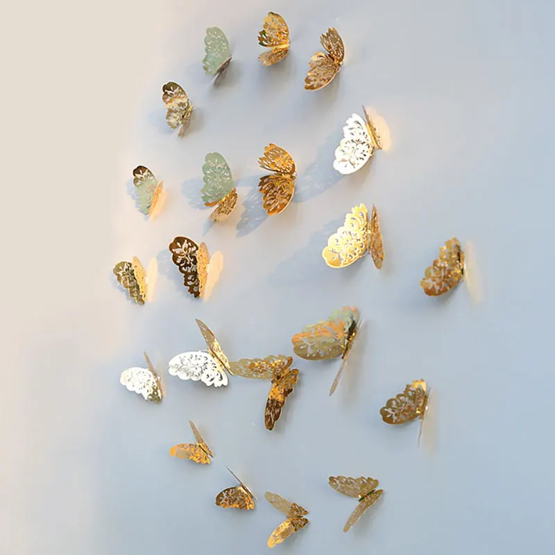 12 шт.лот 3D полые золотые серебряные наклейки на стены с бабочками...