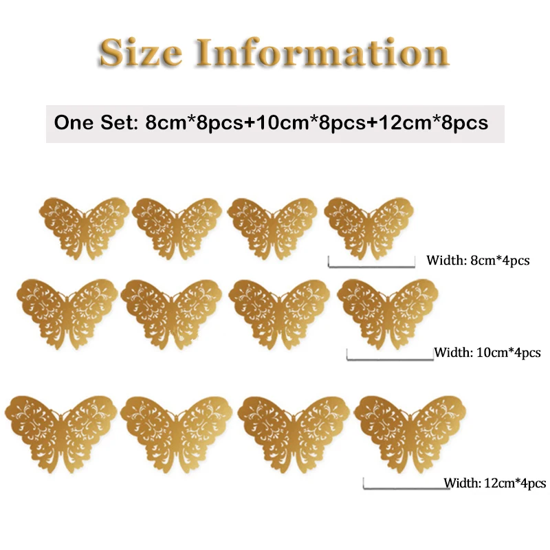 3. Комплект:24 шт.Бабочки разного размера