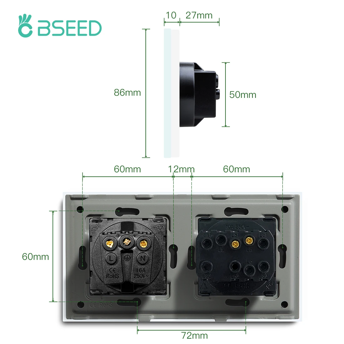 Двойная настенная розетка BSEED Mvava с Европейским разъемом, 16 А,...