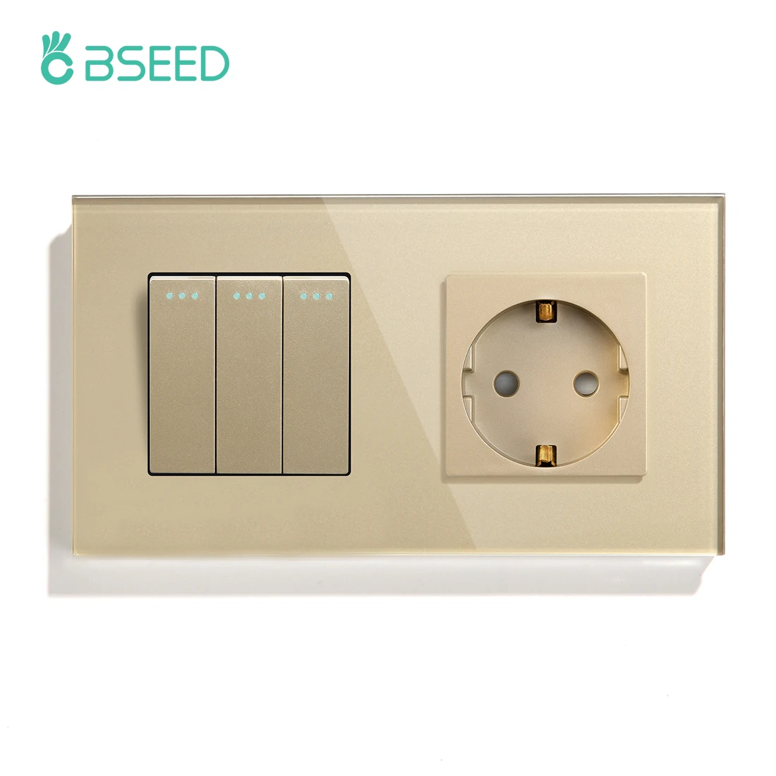 Настенная розетка BSEED, механические переключатели с хрустальным стеклом, 123 клавиши, 1 канал, стандарт ЕС, белый, черный, золотой