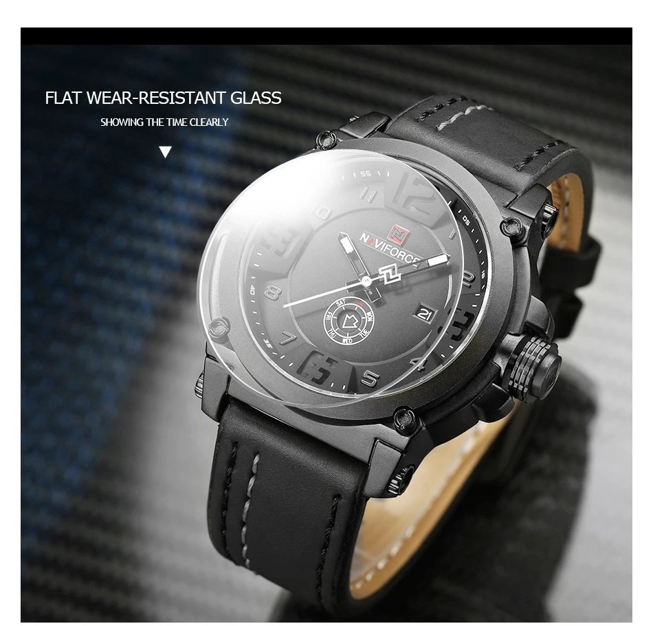Часы наручные NAVIFORCE Мужские кварцевые, брендовые Роскошные спортивные армейские водонепроницаемые в стиле милитари, с кожаным ремешком
