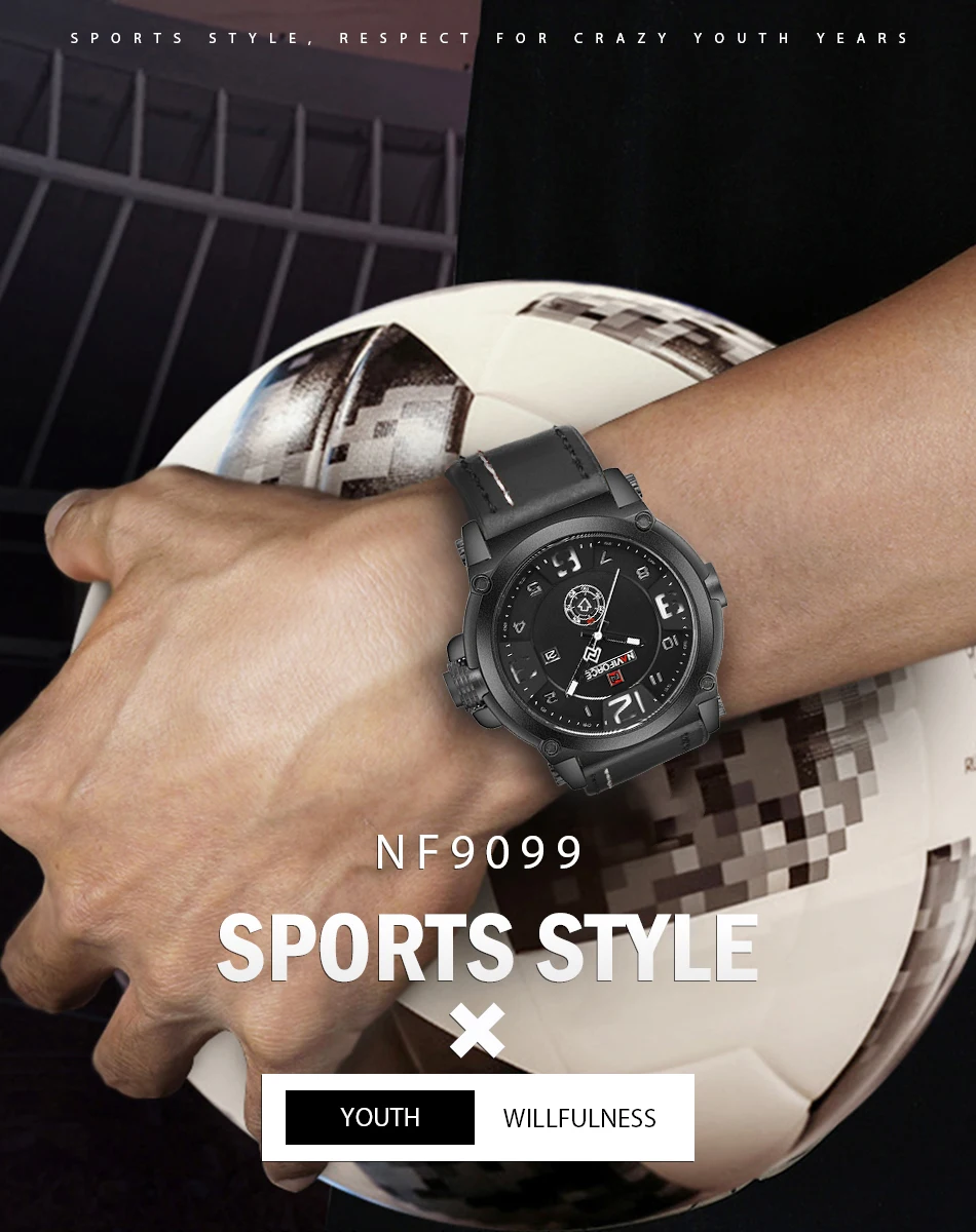 Модель: NAVIFORCE NF9099 NAVIFORCE мужские часы Топ бренд класса люкс спортивные кварцевые часы с кожаным ремешком Мужские Водонепроницаемые наручные часы relogio masculino 9099