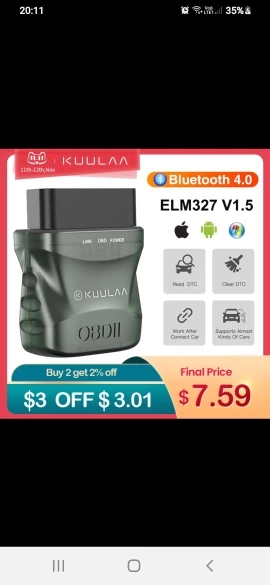 Поставл 5 звёзд для того чтобы все знали, версия этого OBD2 НЕ v1.5 может и меньше.Он вам послужит чтобы убрать ошибки и посмотреть данные. Он вам не даст чтобы открыть скрытые функции вашего Авто. Приложение CAR SCANNER не одобряет эту фигню, так что не тратьте на него деньги, к айфону он подключается и то через приложение надо подключаться. У меня все гавно этот аппарат!!!