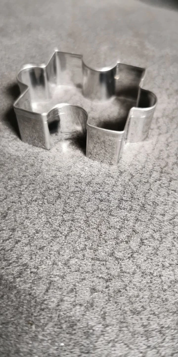 формочки качественная, из стали, один край острый, второй "подогнут". тесто режет хорошо, но в любом случае, когда перекладываешь формованную печенье на противень, то она меняет форму. в паззлы с таким печеньем не сыграть))) а так прикольно!