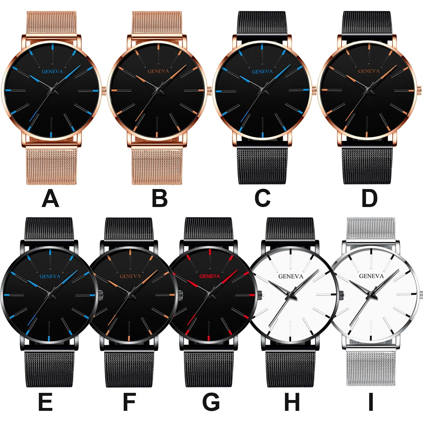 Мужские модные ультратонкие часы, деловые кварцевые часы из нержавеющей стали с сеткой
