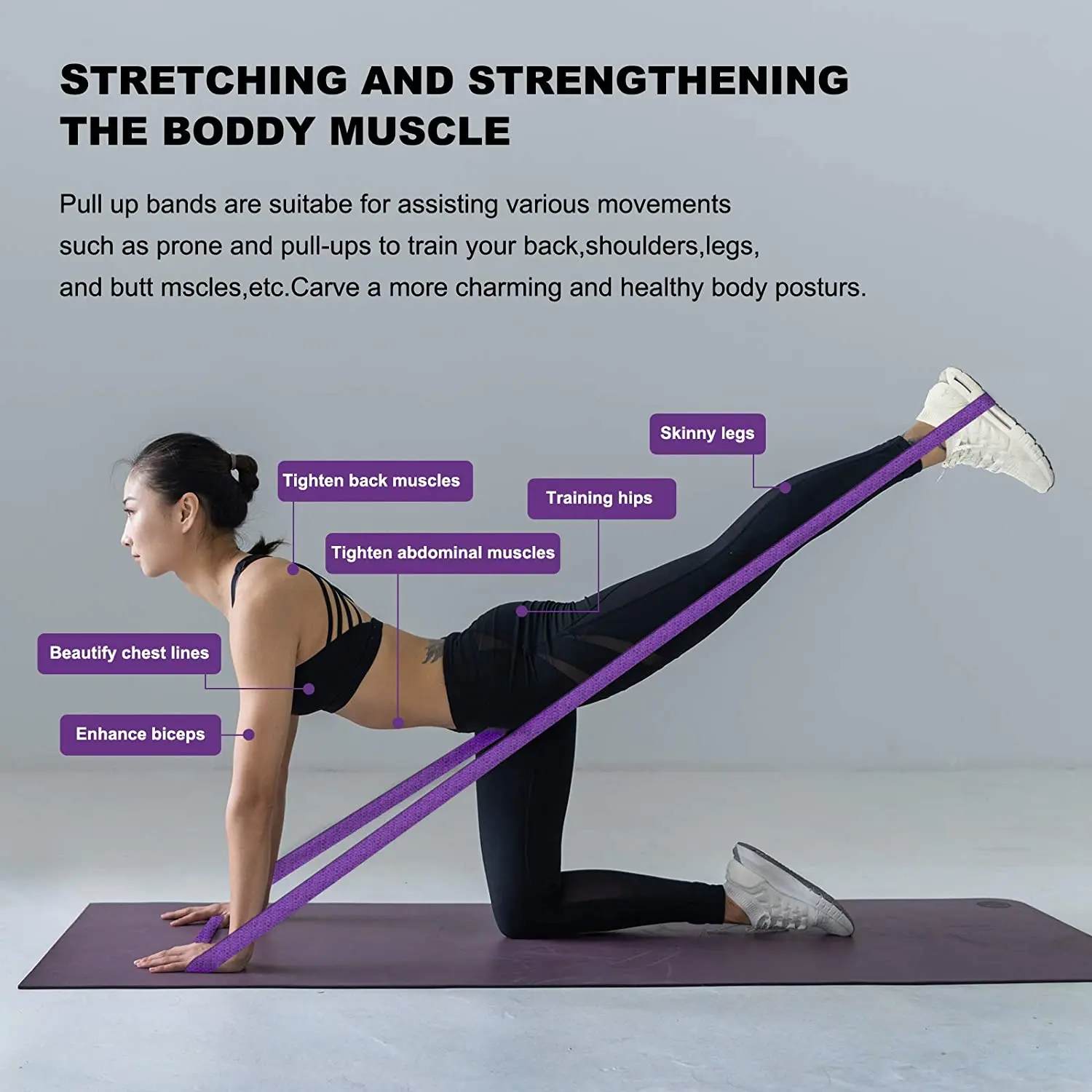Эластичная лента для тренировок по растяжению, для дома, йоги, тренажерного зала, фитнеса