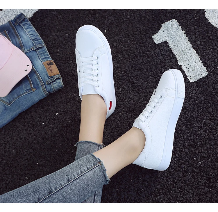 Женские кроссовки из ПУ кожи, белые дышащие кроссовки в форме сердц...