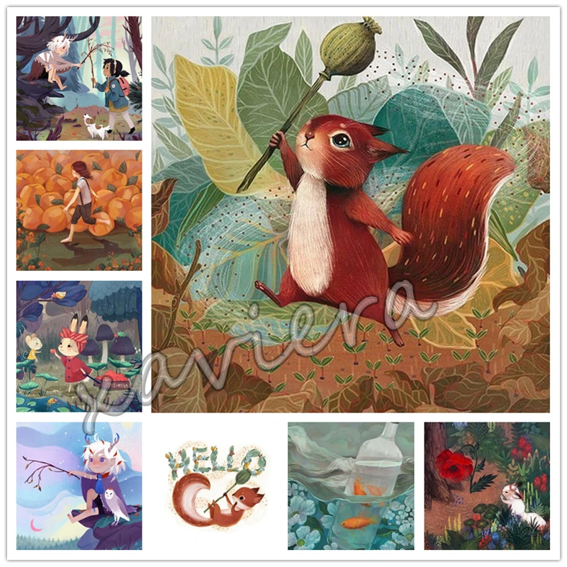 Алмазная 5D Вышивка сделай сам, белка, маленькая девочка, полная алмазная живопись, аниме стразы, Набор для вышивки крестиком, украшение для дома ручной работы