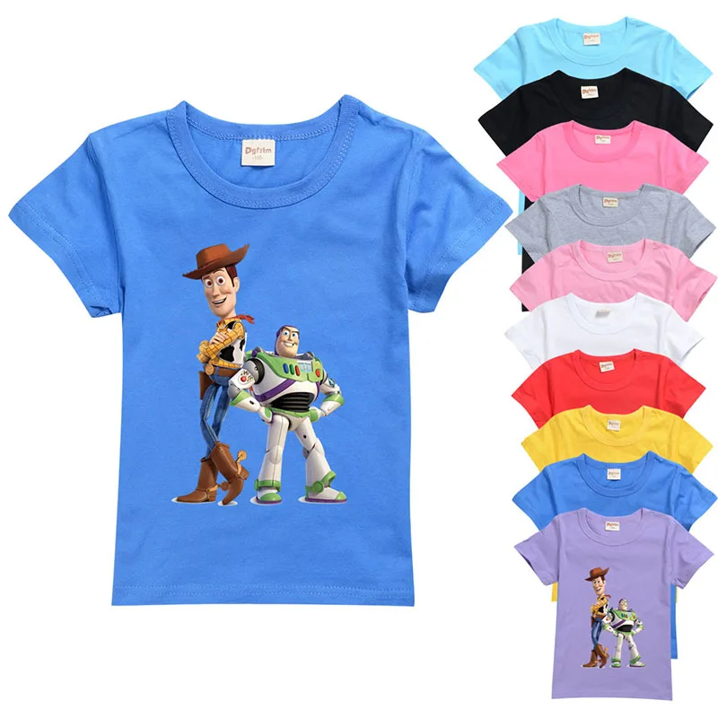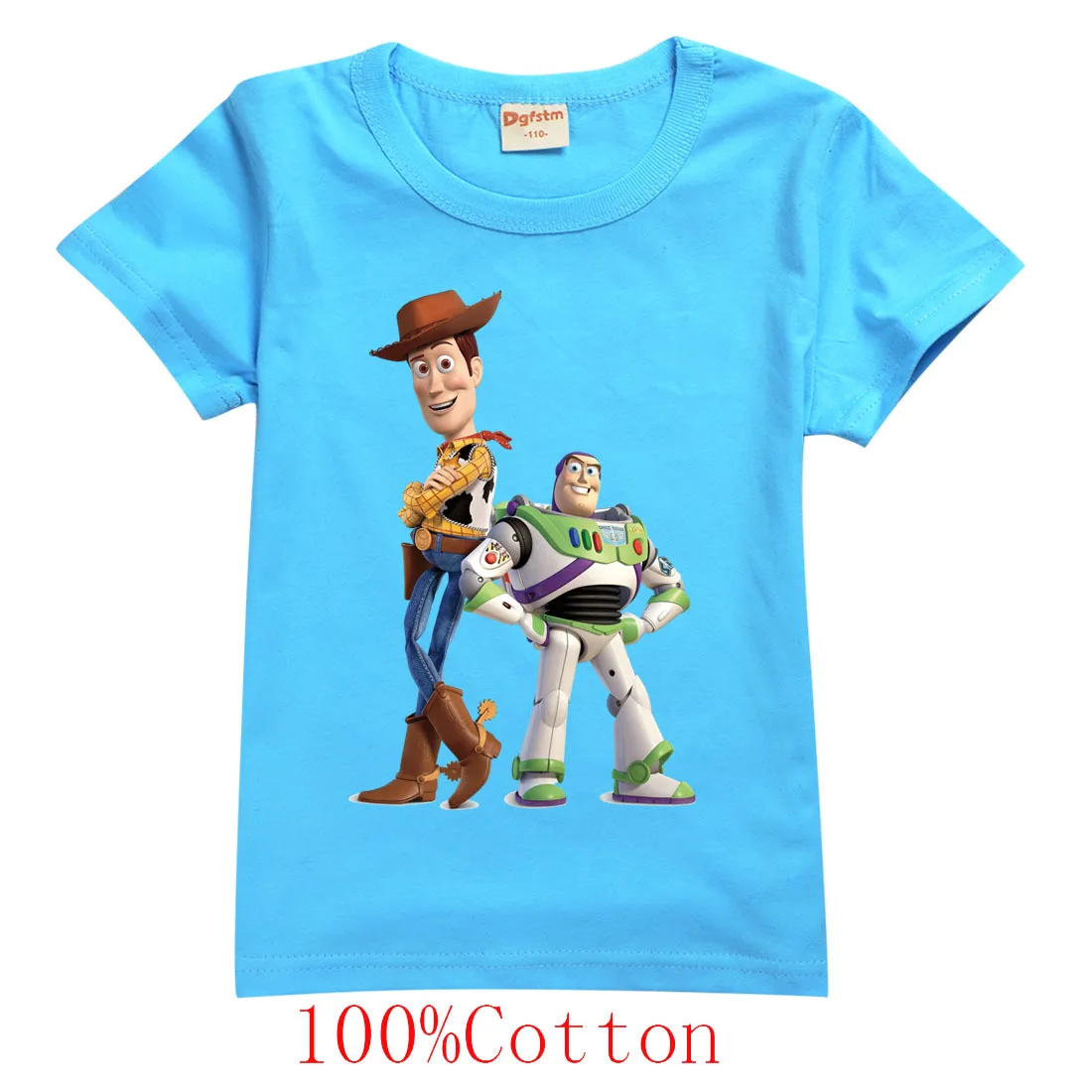 Детские футболки с героями мультфильма История игрушек, хлопковые топы с короткими рукавами и принтом Вуди, для мальчиков и девочек, От 2 до 15 лет