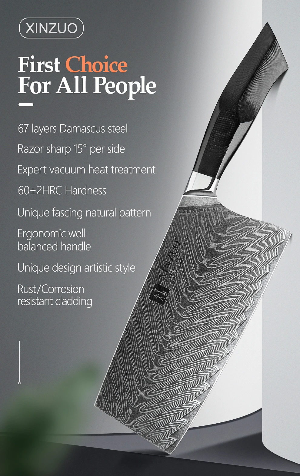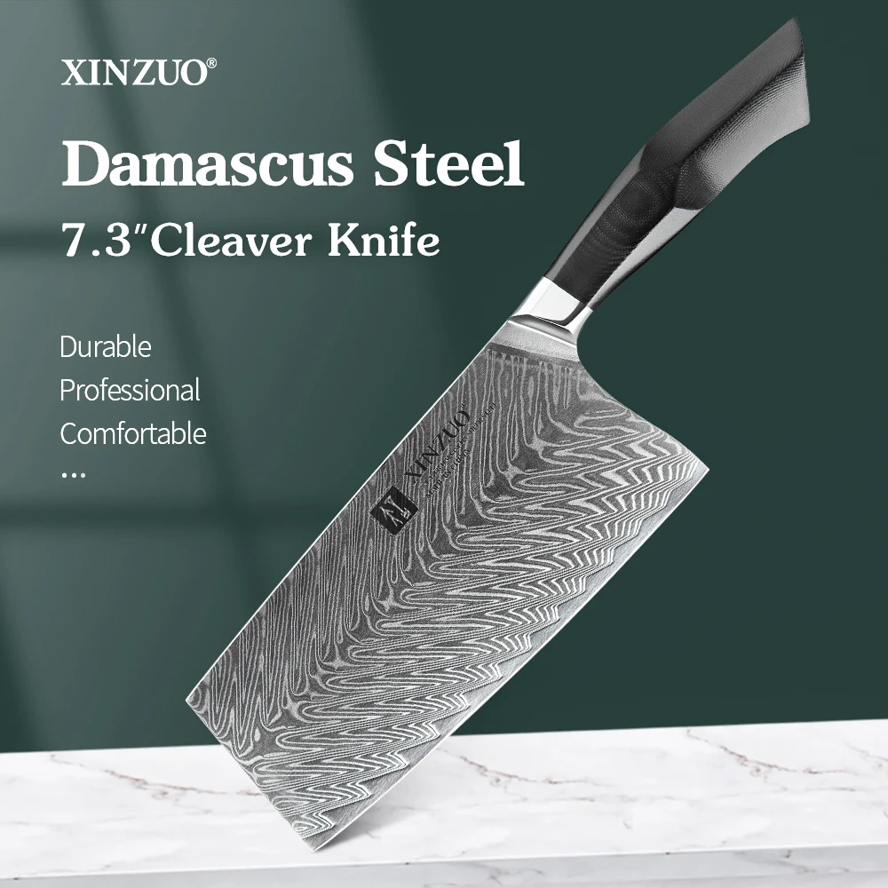 XINZUO 7,3 ''дюймов Тесак Ножи Janpanse 67 слоев из дамасской стали Сталь мясо овощерезка для нарезки мясных ножей G10 ручка