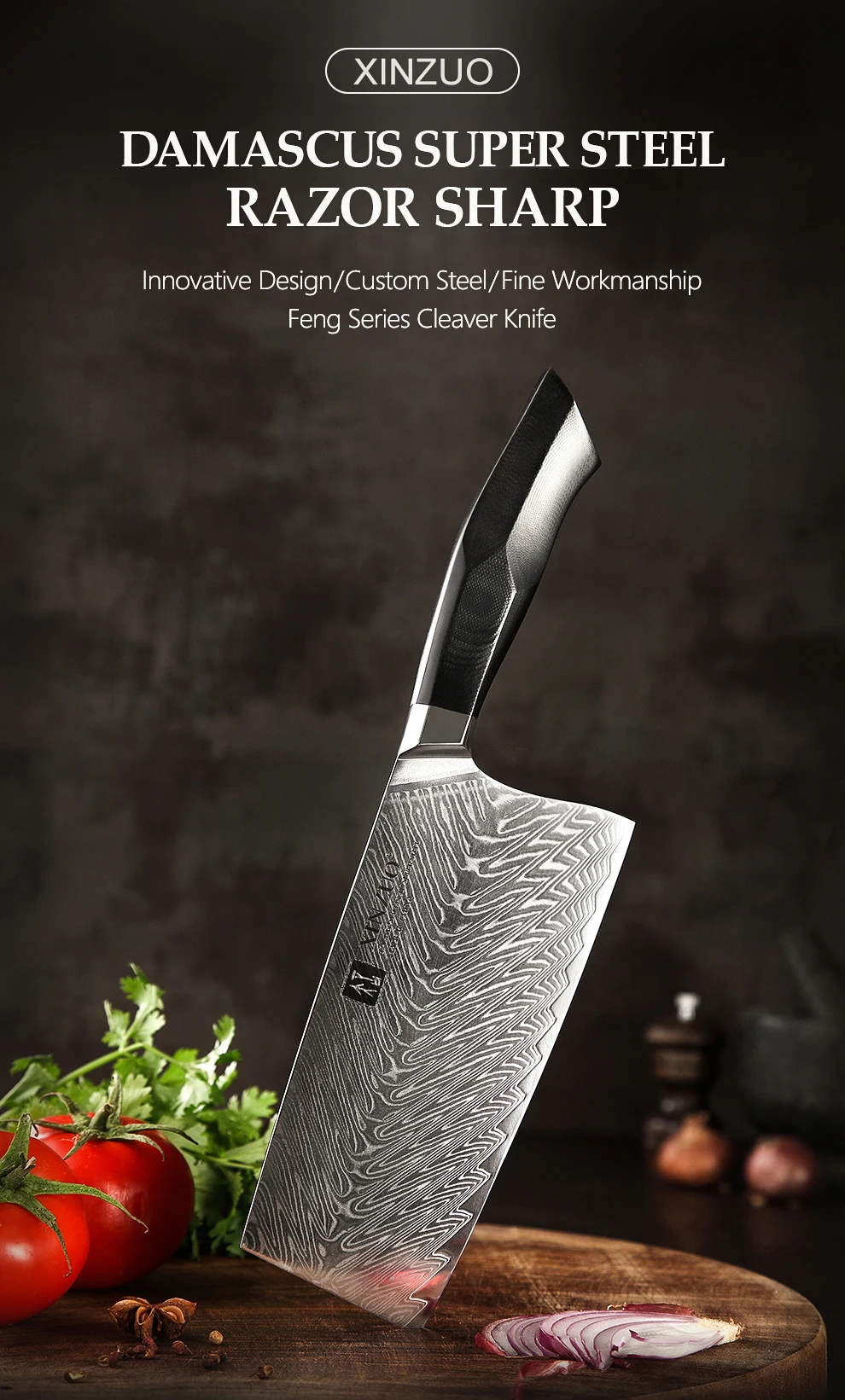 XINZUO Фэн серии Дамасская сталь Кливер нож