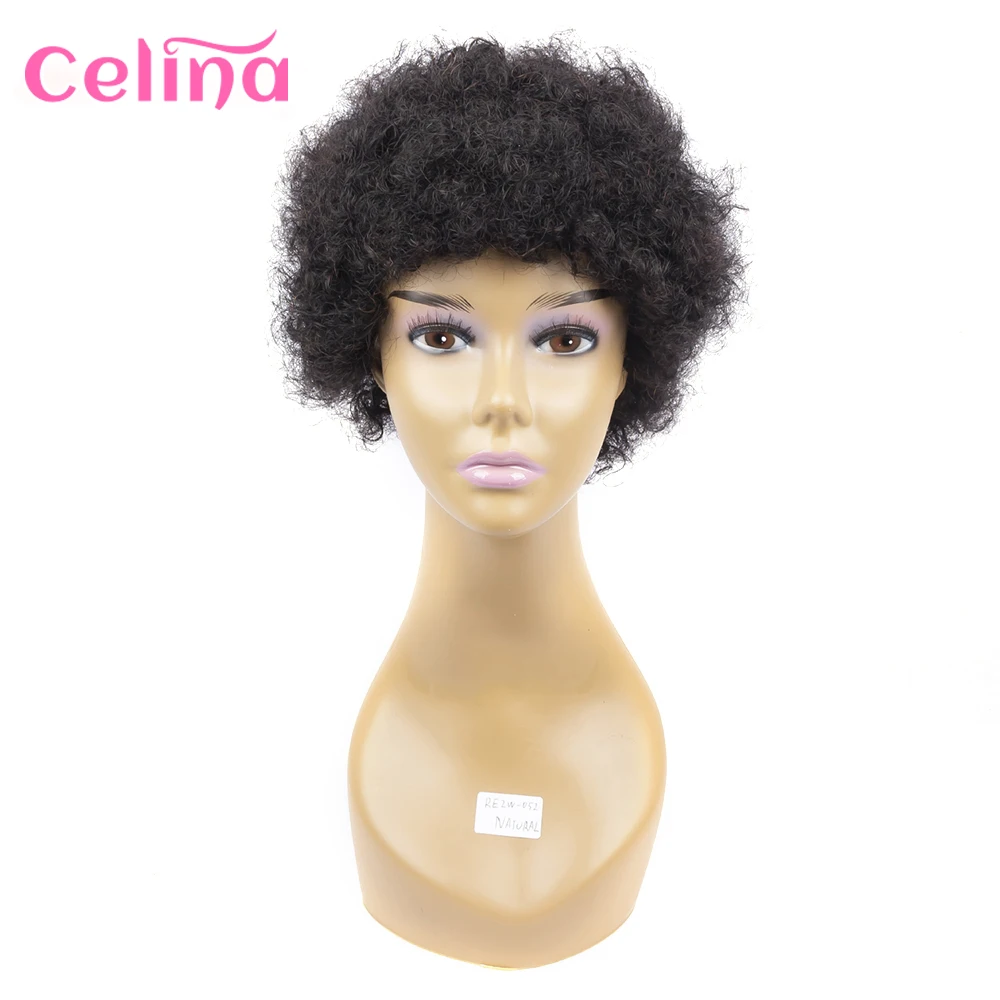 Парик с кудрявыми афро-волосами, Кудрявые Парики из человеческих волос, парик с короткими волосами, парик из человеческих волос машинной работы, дешевый кудрявый парик для черных женщин