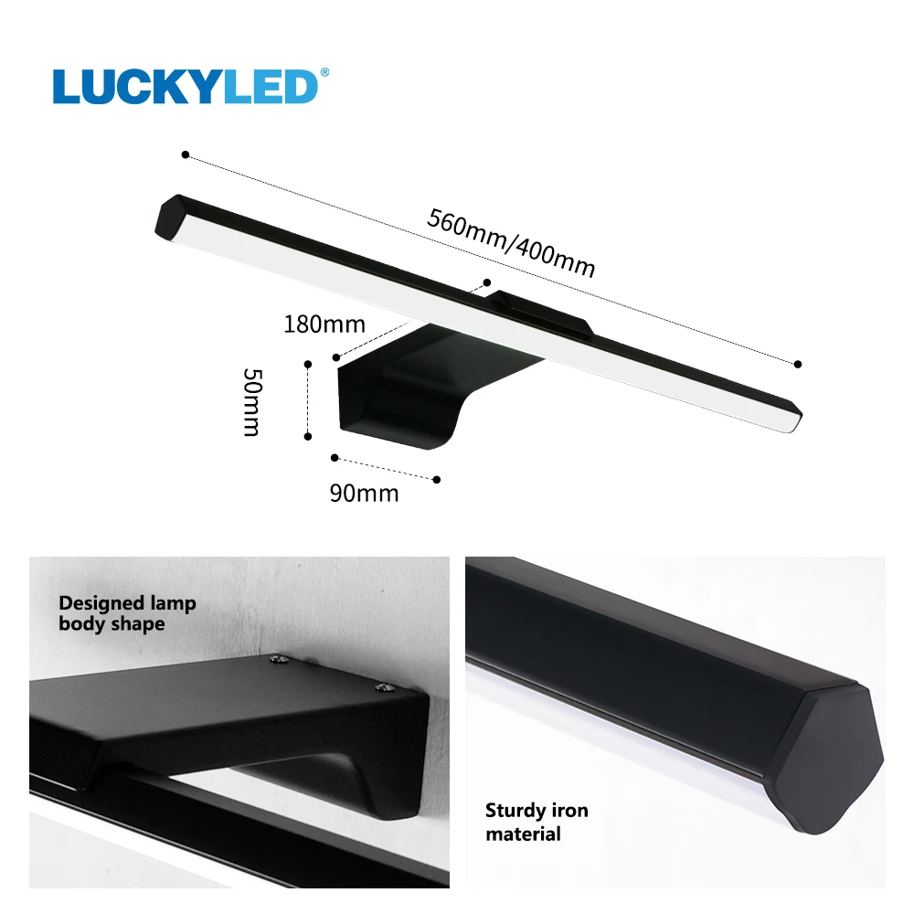 Светодиодный настенный светильник LUCKY, комнатная современная лампа для зеркала в ванной, 12 Вт, 56 см, белая, черная настенная лампа для гостиной, спальни