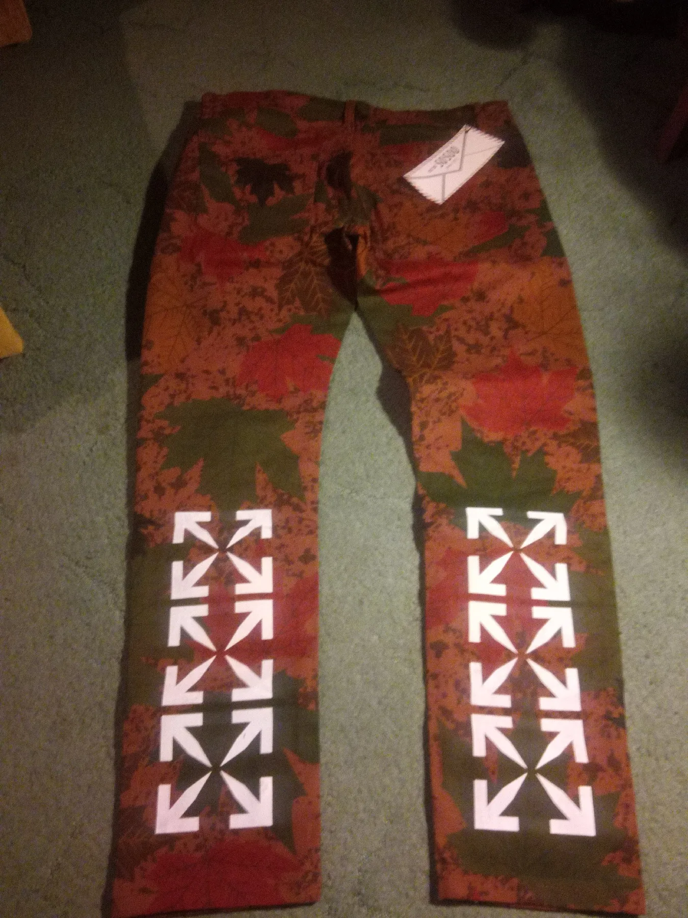 Штаны очень классные и красивые, но на фото не видно, что на гачах в районе икр такой белый сумасшедший рисунок!!! Трек код хорошо отслеживался. Рекомендую. А белый рисунок чем замазать? Ха-Ха-Ха. И спереди Офф. А в общем красивые.