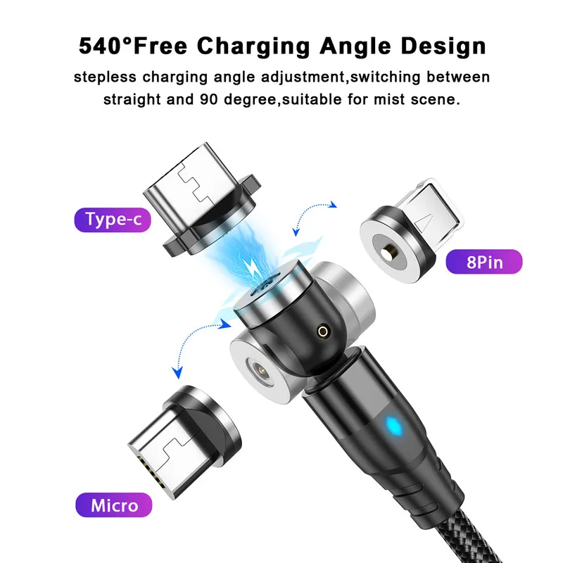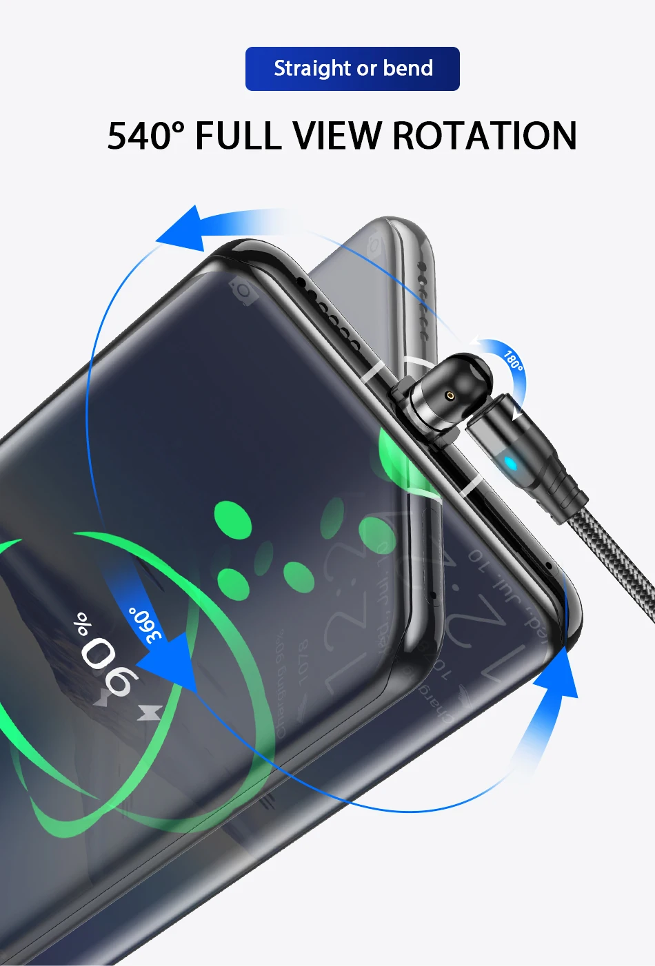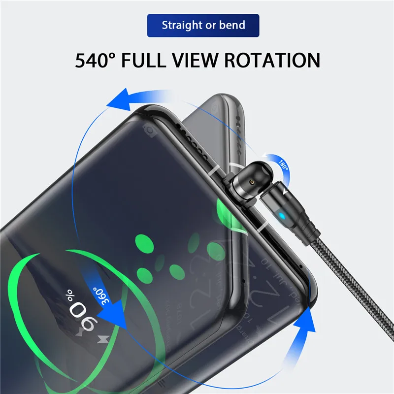 Магнитный кабель Micro USB Type-C, вращающийся на 540 градусов, для iPhone11 Pro XS Max Samsung Xiaomi, USB-кабель для телефона, USB шнур, провод