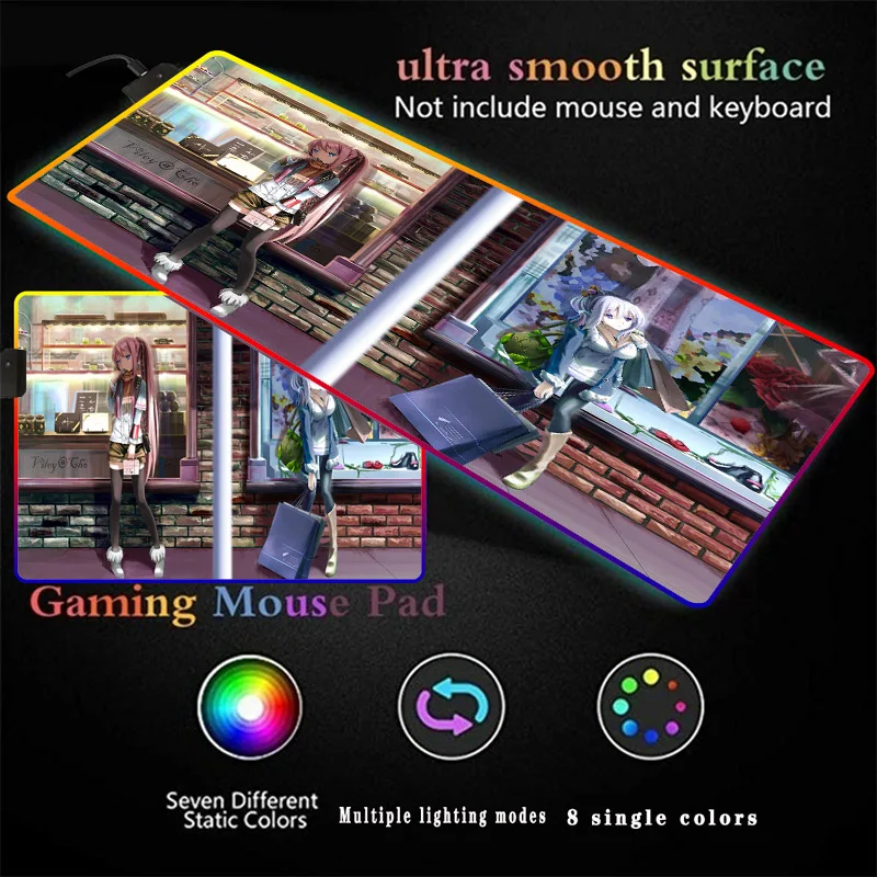 Большой светящийся коврик для мыши в стиле аниме, с подсветкой