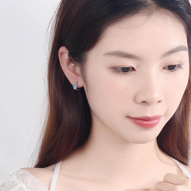 Серьги-кольца с кошачьими следами для девочек, маленькие серьги с синим цирконием в простом стиле, женские серьги для пирсинга