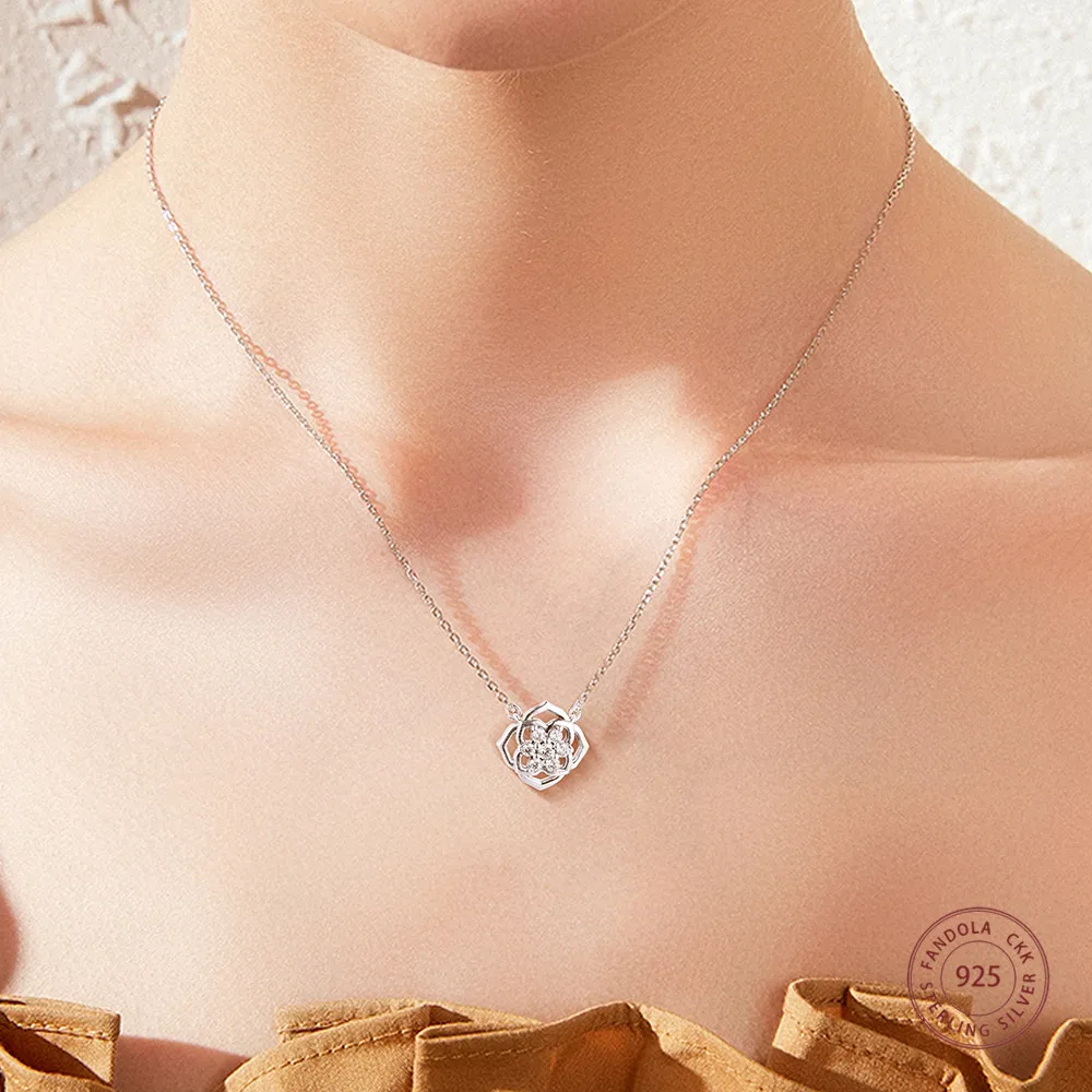 Подарок на день матери 2021 серебро 925 пробы лепестки роз колье ожерелья для женщин ювелирные изделия прозрачные CZ ожерелья и подвески ожерелья