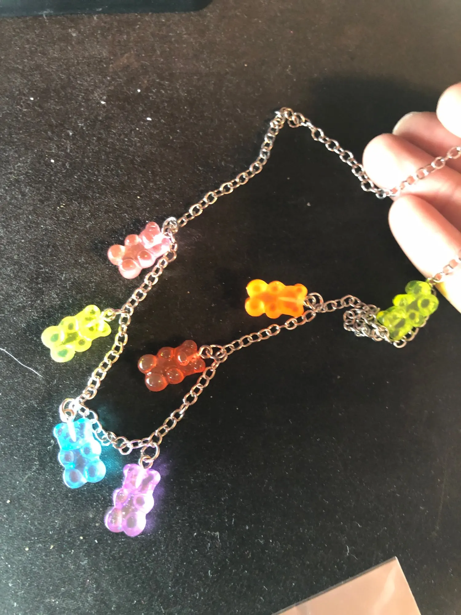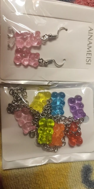 Заказала только колье,отправили быстро,доставка в Волгоградскую область около месяца. Колье как на картинке,мишки маленькие около 2 см,похожи на мармеладки,16 летний ребенок в восторге))).Рекомендую,заказывайте,радуйте себя и детей