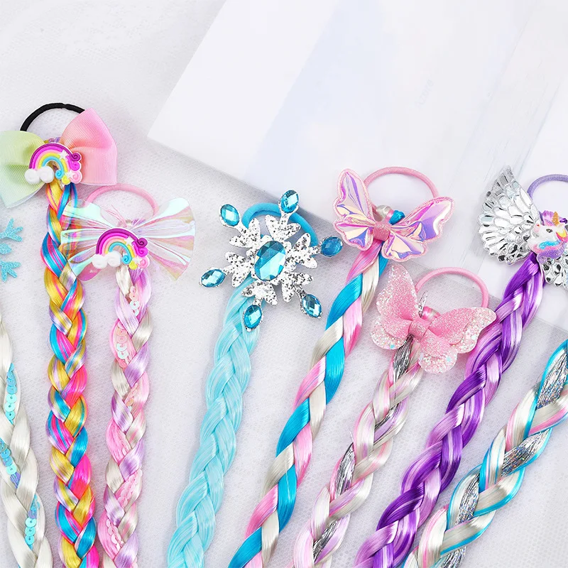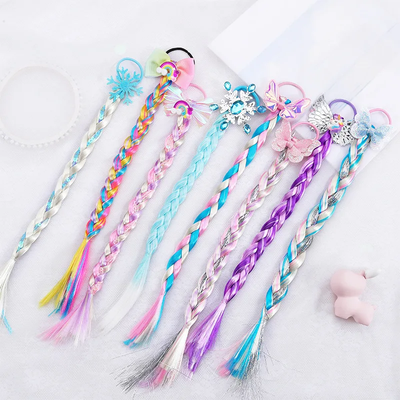 Резинка для волос с блестками для девочек, разноцветная эластичная заколка для хвоста, с единорогом
