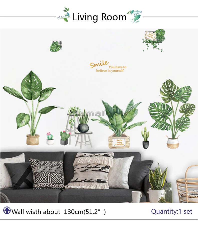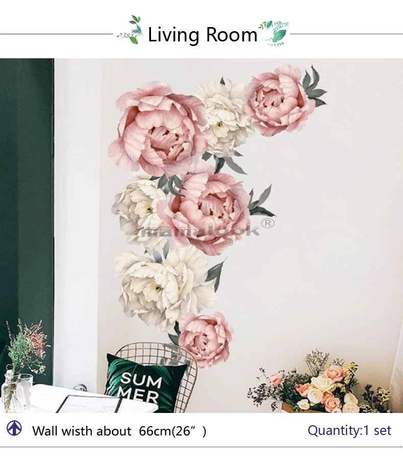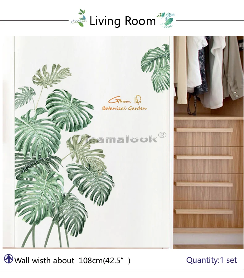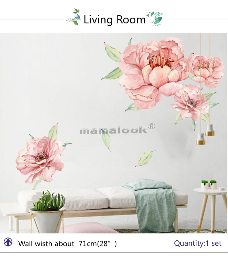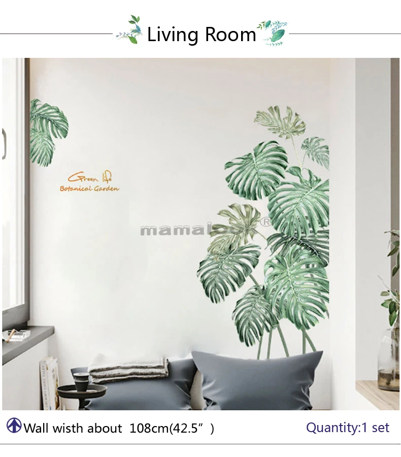 Зеленые Стикеры для растений на стену DIY розовые пионы цветы пляж тропические Пальмовые Листья настенные наклейки современное искусство Виниловая Наклейка Настенная